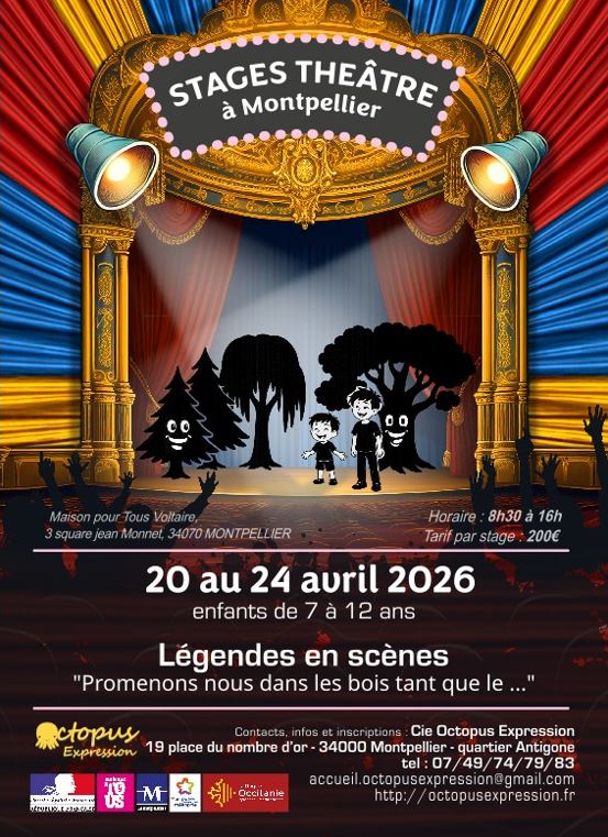 Elle propose des cours de théatre pour enfants, ados et adultes, des stages et ateliers, des formation, des projets d’éducation et des spectacles à Montpellier.
